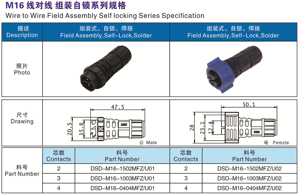 M16 線對(duì)線 組裝自鎖 系列