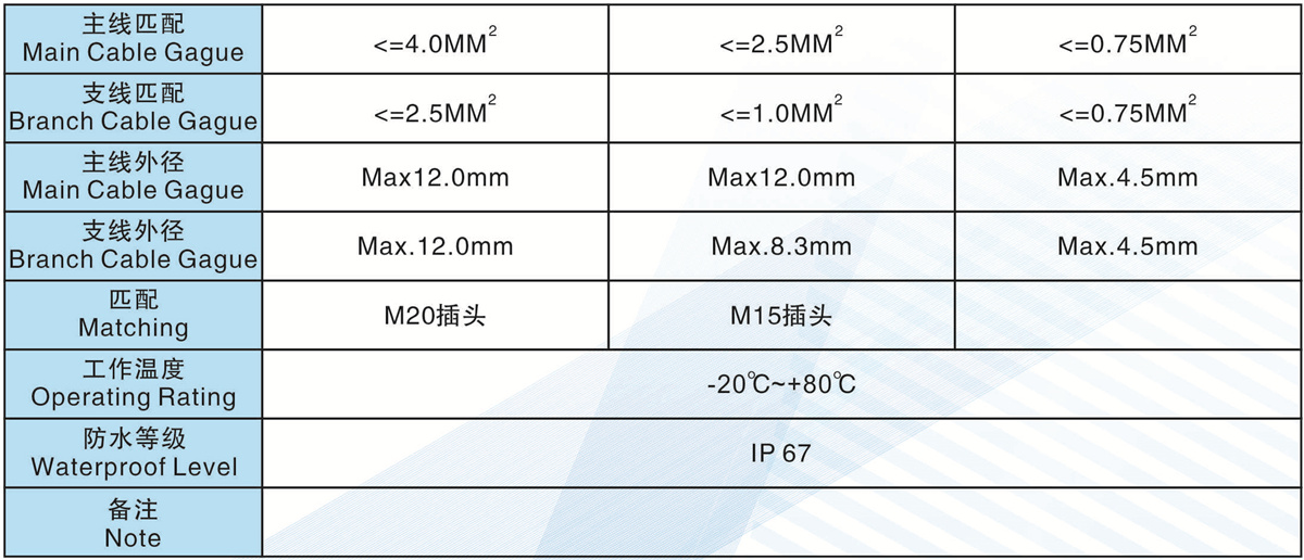 支線匹配(Branch Cable Gague):<=6.0MM2