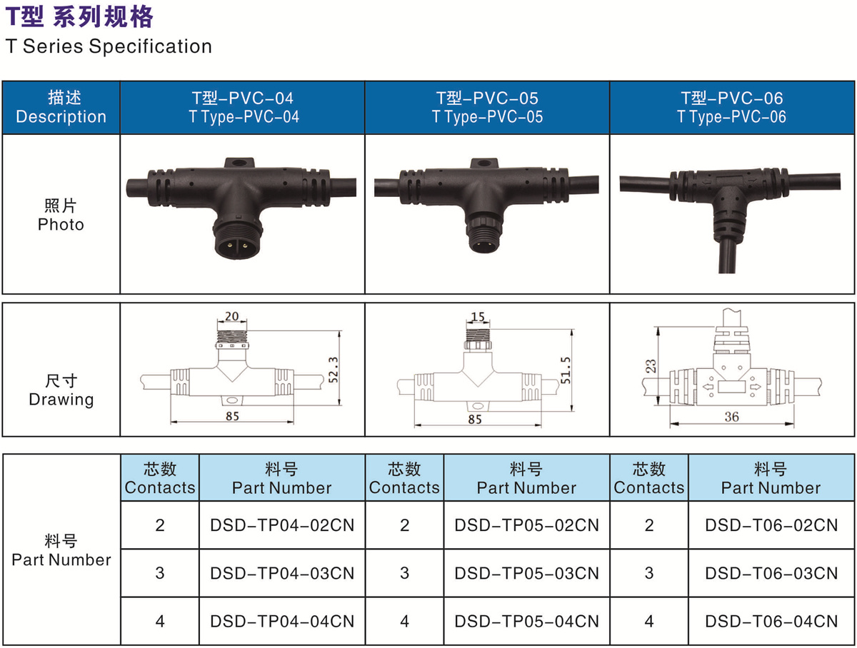 T型-PVC-04 (2芯  3芯  4芯)